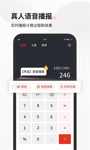 2、语音播报:计算完成后自动朗读结果,无需查看。