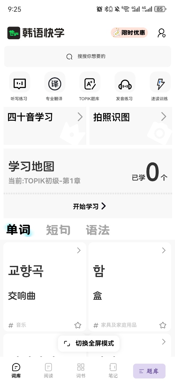 1、进入韩语快学App,点击学习地图。