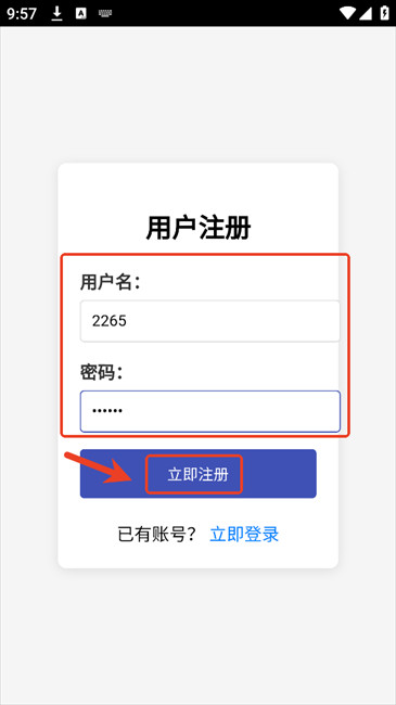3.输入用户名和密码后点击点击“立即注册”