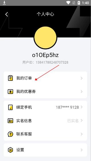 在打开的新页面中点击【我的订单】