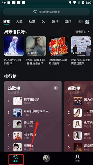 2. 看看最新的音乐排行榜,它们都是大家都喜欢的音乐,肯定有一些好作品,点击收听,它真的很热闹。