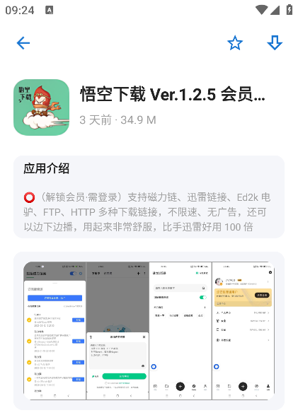 4、找到需要的应用资源以后,you星系的应用介绍以及截图,可以点击右上角进行收藏和下载。