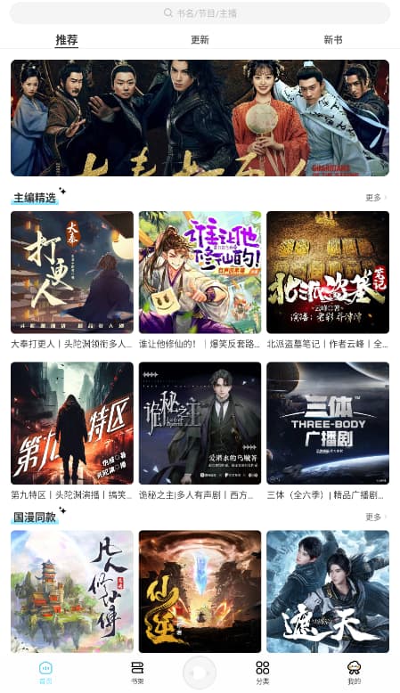 海云听书可以无广告免费畅听全网广播剧、有声书、音乐戏曲、评书相声等内容,软件目前仅为安卓用户服务,苹果端暂无安装包。直接输入书名,就能快速找到想听的内容,听书时完全能按照自己的喜好设置,自定义时长、播放顺序、主播语速等。