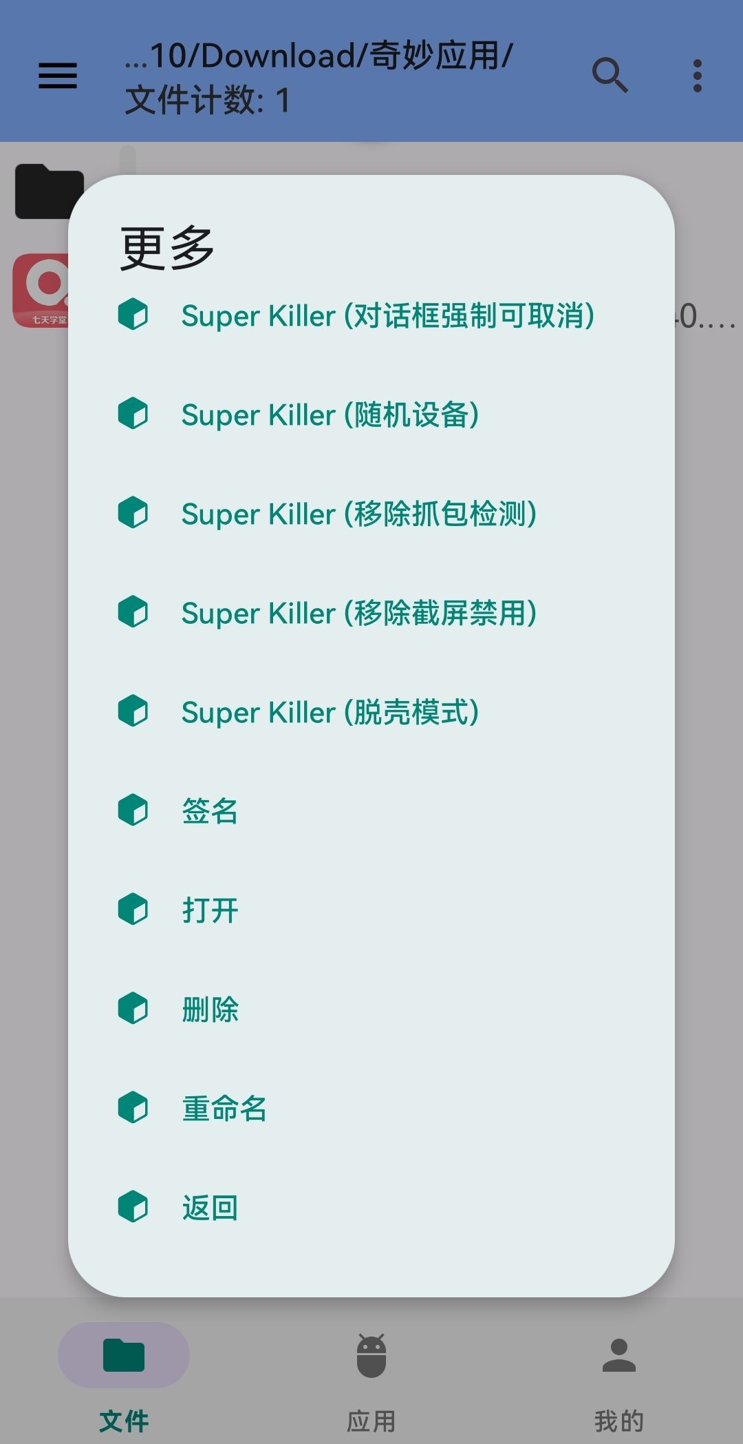 4、在文件选择界面中,找到并选择需要去除自签的APK文件