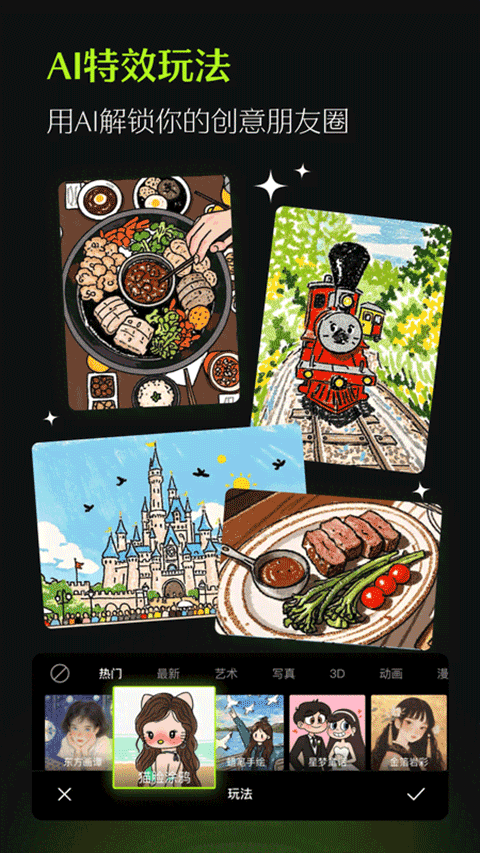2、涵盖胶片、油画、DV等效果,满足用户对不同氛围的追求。