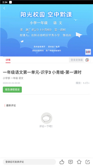 5、一课时30分钟,不多不少刚刚好,毕竟是贵州电视台出品,各个方面都十分贴心,家长们也可以放心让孩子学习。