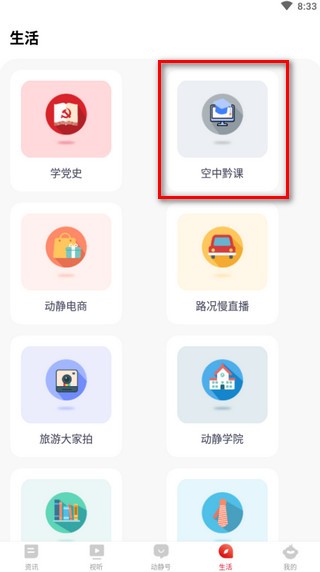 2、可以在生活界面看到空中黔课按钮,这个其实就是贵州电视台出品的网课。