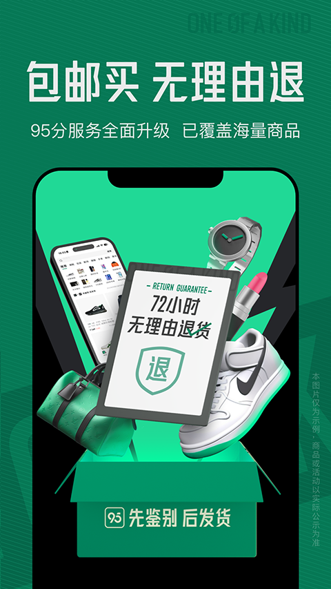 从此以后,购买95分全品类商品,享包邮服务,退货享72小时无理由服务。