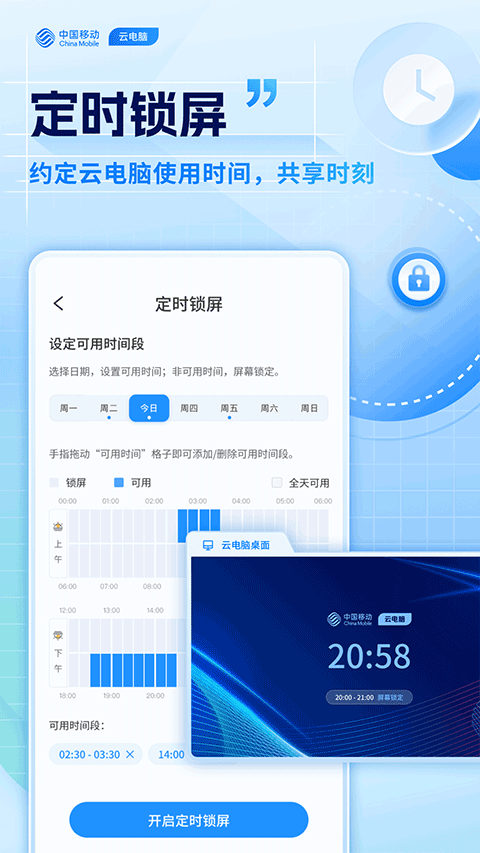移动云电脑拥有国内率先知名的桌面虚拟化技术,将传统的pc配置融入了个人终端设备中,一键安全启动,自由轻松的办公,畅快娱乐的玩耍,提供了标准化的云上电脑服务,尤其是需要在线教育的学子可以来使用,保证满足大家的需求,找到云电脑解决方案。