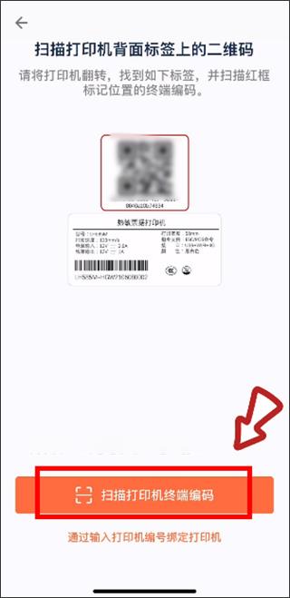 7、再扫描打印机终端背面标签上的二维码即可,也可以通过输入打印机编号进行绑定;