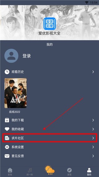2、进入我的界面,点击下方的【求片社区】,