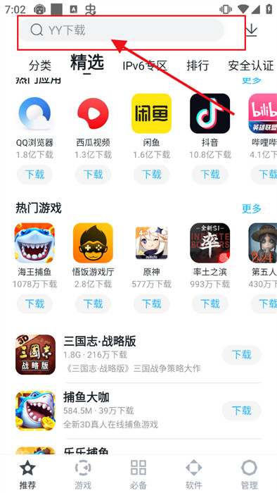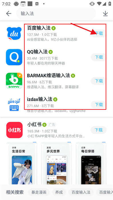 2、随后,在搜索框这里输入一些关键词,就能看到多种类似的软件;