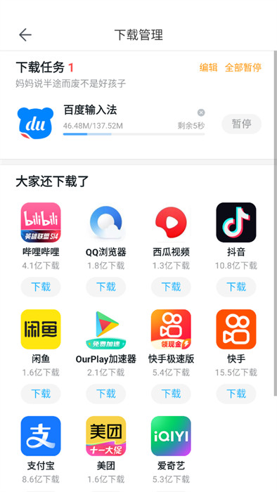 3、在下载管理页面便是曾经下载过的软件;