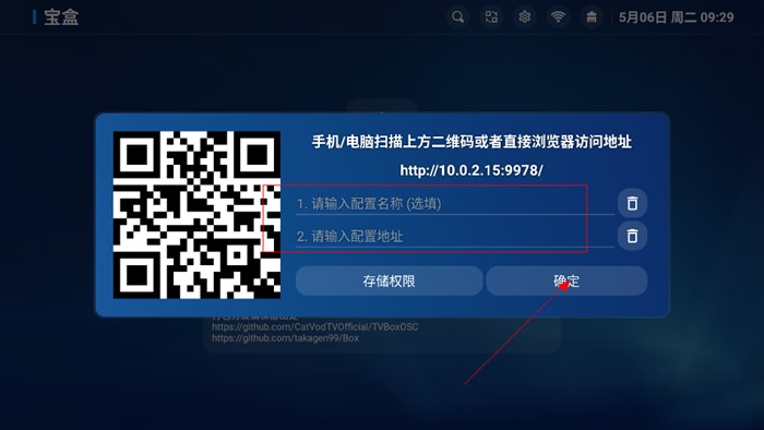 2、输入配置名称,地址,点击确定,就可以直接进入影视界面