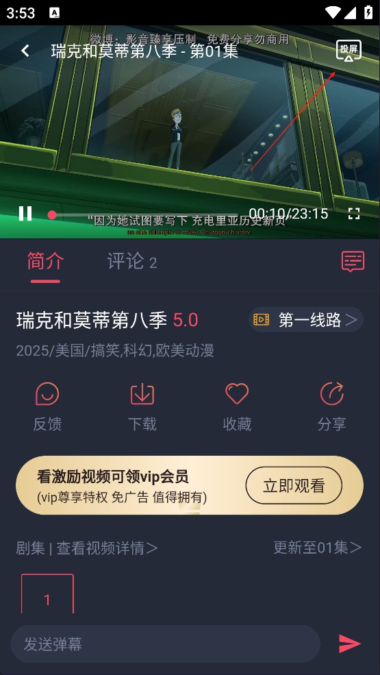 5. 在观看动漫时,可以选择清晰度,播放源会根据网速自动切换,让追剧更加顺畅。