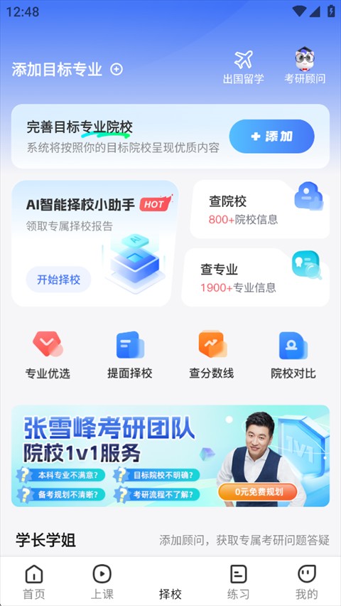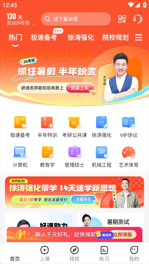 学院规划方面的张雪峰、政治方面的徐涛、英语方面的涂浩民、数学方面的杨超等知名教师团队全程支持。