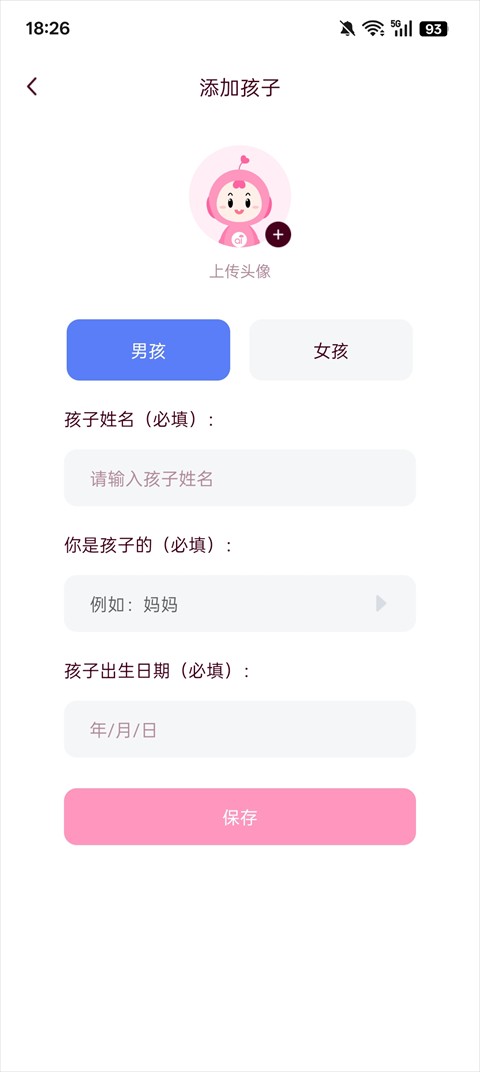 3、完善孩子信息