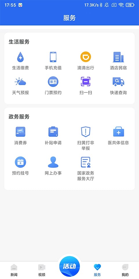 4、服务:涵盖生活服务与政务服务两大分类;