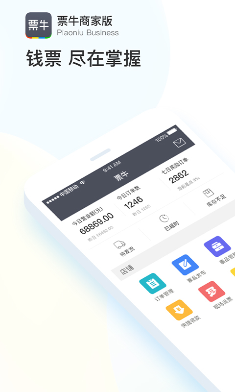 票牛商家版是上海颂品网络科技有限公司专为入驻票牛网票务平台的商家打造的经营利器 。具备多元实用功能:演出管理方面,能实时在线管理演出列表,一键挂售有票项目;票品管理上,随时随地编辑、提交、查看票品进度;订单管理可实时掌握订单情况,便捷安排发货;支持电子验票,实地扫码即可,免除现场验单繁琐;快捷收款支持微信、支付宝等多种方式,线下售票收款超便利;现场派票功能,现场扫码验单,摆脱手工核销麻烦,助力商家高效管理票务生意。