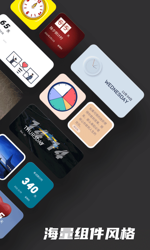 Widgetsmith由南京大智若愚网络科技有限公司研发出品。软件内置海量精美小组件,不仅外观精致美观,而且功能丰富使用,例如时间日期、相册、文字、空白、照片、日历、提醒、天气、健康活动、潮汐等等功能,并且支持用户根据自己的喜好自定义组件样式,例如不同的字体、色调等等,搭配丰富的动态壁纸,轻松打造出个性化十足的手机主题外观。