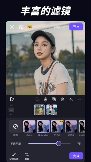 多层时间轴:直观,流畅的编辑界面,逐帧精确缩放,精确修剪影片。