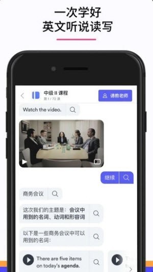 想要有效的提高自己的英语能力,EF Hello就是一款非常好用的英语学习软件,涵盖了非常丰富的英语课程,我们大家就可以及时的进行学习,而且拥有着非常专业的老师,能够为大家进行1对1的指导,为自己养成一个良好的学习习惯。