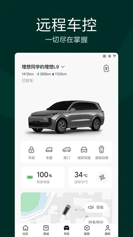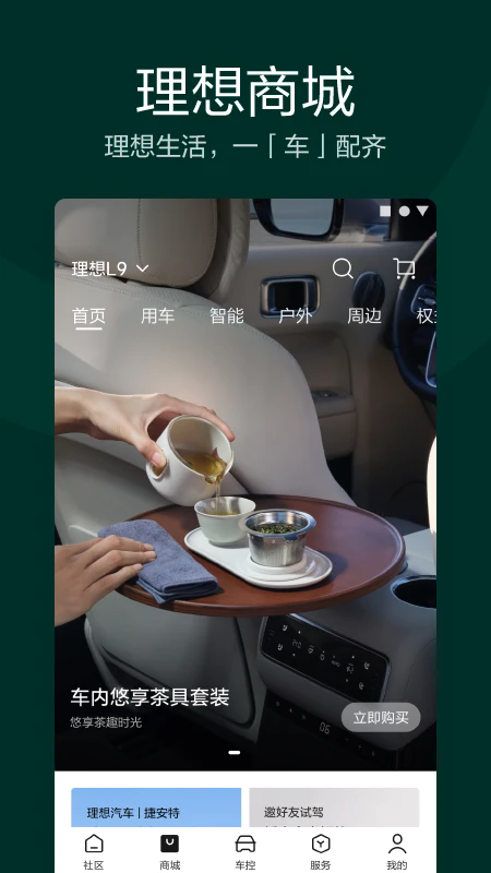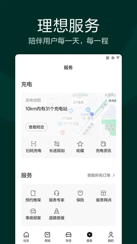 4、【激活车辆后,远程控制,实时查看您的理想ONE服务】服务汇集与理想商城,让您的用车更轻松。