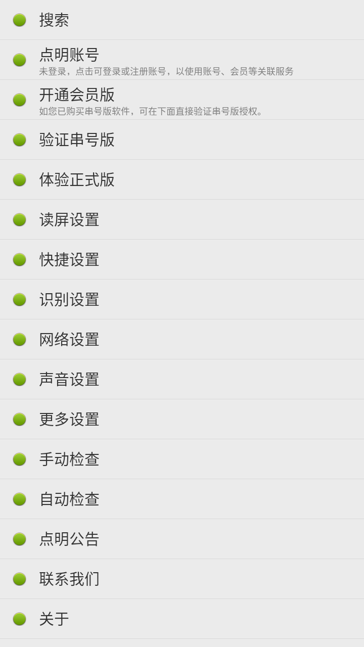 点明安卓是一款能够让用户进行无障碍手机读屏的软件,适用于眼睛有问题的用户进行使用,包括:盲人、低视力和老年人。其操作简单,只需在本站下载好本软件,并打开,选择读屏设置,将其开启后,即可实现读屏的操作,十分的方便。拥有了本软件,需要本软件的用户便可以轻松的进行手机的操作,让其的生活充满更多的便利,收获更多的乐趣。