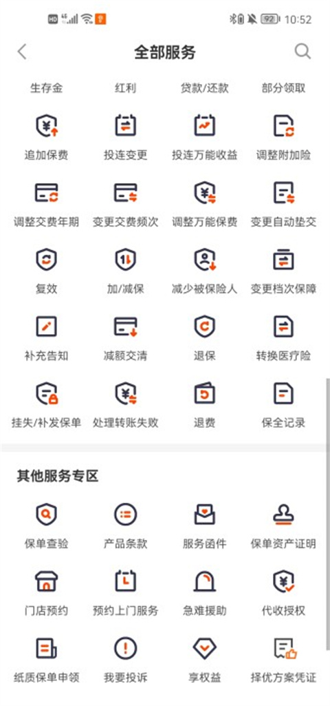 3、点击“退保”,在“保单变更专区”板块点击进入“退保”。