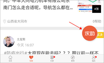 1、打卡卡友地带app软件后,点击在求助界面,点击右下角的“求助”