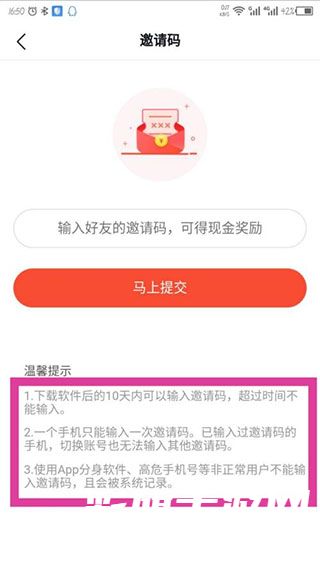 4、可以根据温馨提示,需要符合要求,才可以输入邀请码获得奖励。
