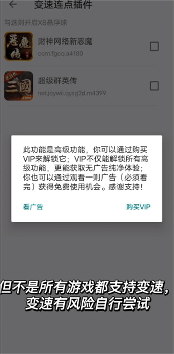 4. 支持加速和不支持相应标记的游戏,允许一键加速许多有趣的游戏