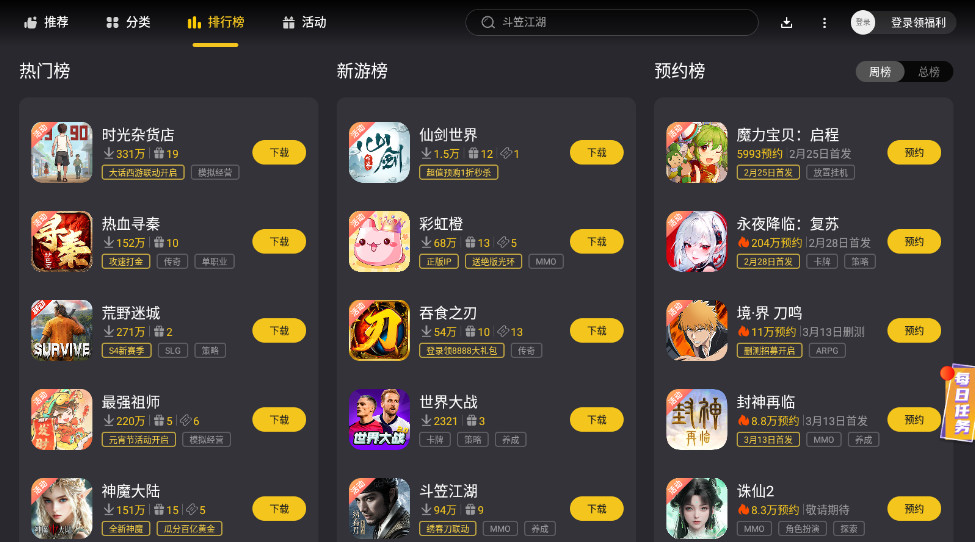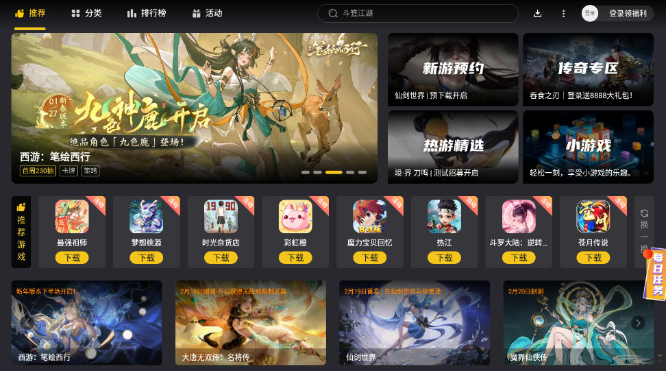 2、从一万多种游戏中精挑细选,第一时间体验最新最热的游戏。