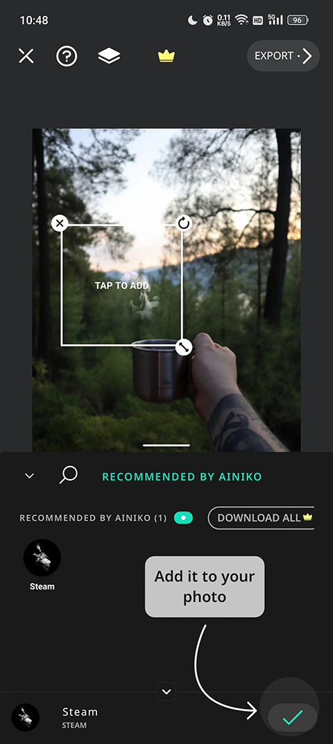 3、进入可以在图片中添加一个动态效果,然后勾选下方的√按钮,这样这张图片就富有了灵魂;