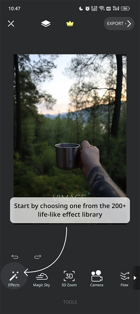 5. 它配备了各种内置光效,滤镜,覆盖和发光效果。用户可以根据主题自由组合使用,创造出电影般的视觉冲击力。