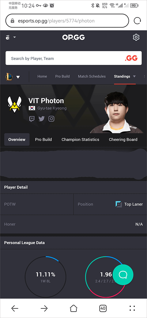 4、在个人资料界面中你可以查看到选手的个人联赛数据、冠军的统计数据等信息