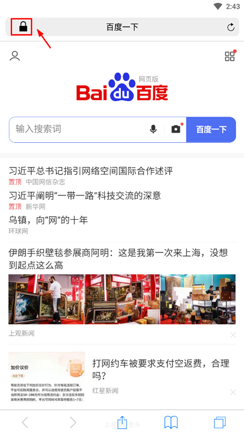 1、打开safari浏览器,点击左上角锁形按钮;