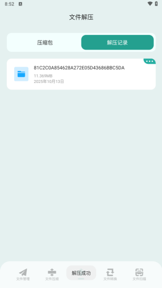 1、进入文件解压板块,选择要解压的文件。