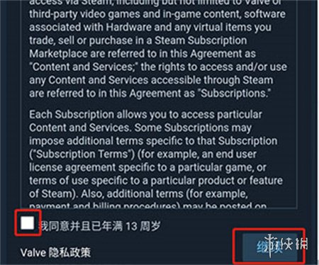 5、勾选“我同意并且已年满13周岁”,随后点击“继续”。