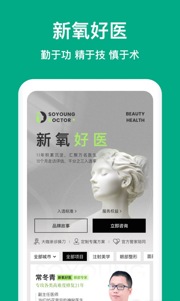 1. 1万多名合格医生,6000多家合法医疗美容机构入驻,为用户提供专业、客观的医疗美容信息和诊断建议。