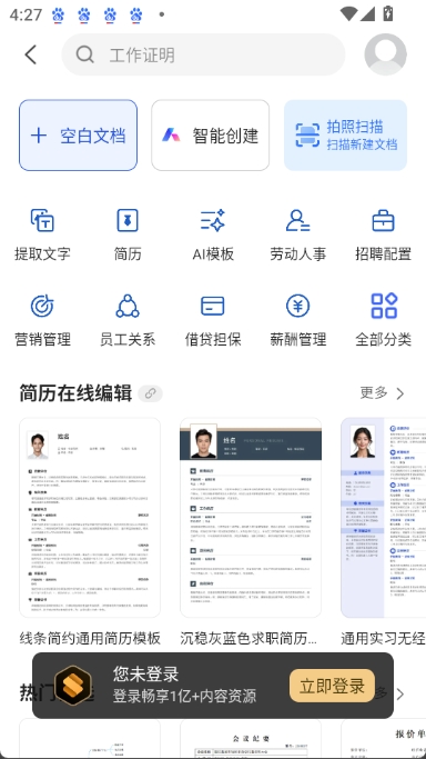 3.WPS AI可以帮助用户自动生成多种类型的文档,用户只需选择所需的文档类型,WPS AI即可一键生成相应的文档内容。