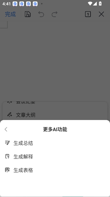 4.更多ai功能可以生成总结、生成解释、生成表格
