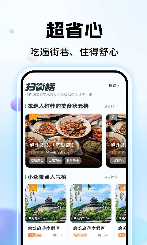 榜单浏览:分类查看美食、酒店、景区实时排名,支持榜单收藏