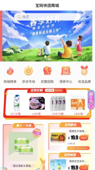 对于有购物需求的你,我们大家就可以下载宝妈快团,它是一款比较专业的购物软件,因为在这个软件当中里面的商品种类非常的丰富,而且拥有着非常多的热销榜单,我们大家就可以及时的进行选购,为我们大家带来了非常多的活动,你就可以参与不同的活动当中购买到许多优质的商品。