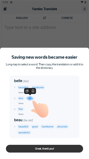 如果你自己有翻译需求的话,我们大家就可以下载雅虎翻译,这是一款非常好用的手机翻译软件,能够全方面的满足我们大家的翻译需求,直接就可以帮助我们大家翻译整个网页的内容,而且不需要任何的复制粘贴,同时支持多种。语言你就可以自主进行切换,有想法的小伙伴们就可以放心的下载,所翻译出来的内容也是非常的精准,能够带给大家一个高质量的手机翻译软件。