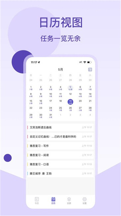 快速查看任务日历。清晰直接的复习节奏让你随时了解每天的任务,没有任何遗漏。