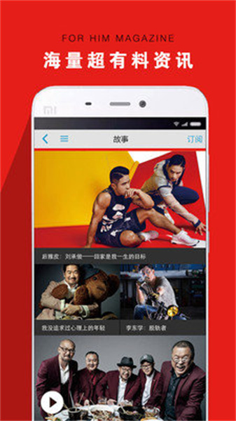 在男人装杂志这款软件当中包含了非常多的时尚、科技、娱乐、健康等多种领域,让我们大家可以更好的去进行阅读,所带来的内容全部都是同步更新的,海量资讯任你选择,每一个用户都可以直接打开软件来进行阅读,能够享受着最为畅快的阅读体验,并且你也可以根据自己的兴趣爱好订阅特定的板块,能够快速的去找到自己所感兴趣的内容,方便我们大家随时进行阅读。