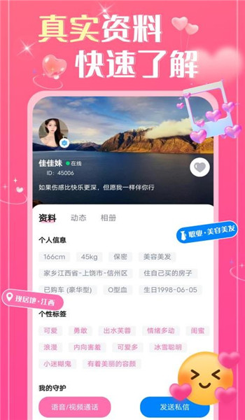 你可以实时了解心仪异性的动态,并通过点赞、分享和在线评论进行互动。