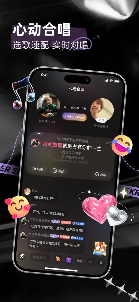 【心动合唱】选歌速配,实时对唱!感觉来电即可解锁无限合唱,心动只在开口瞬间。