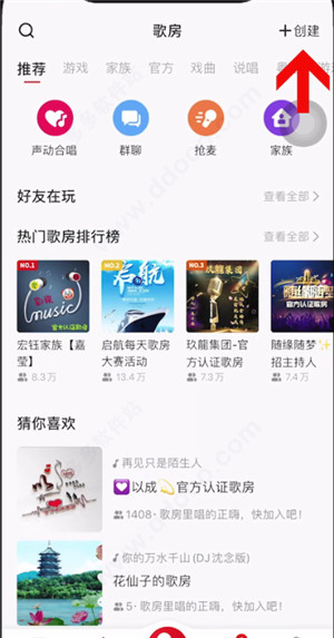 1、在全民K歌旧版本打开全民k歌最新版本,在首页点击底端歌房选项。
